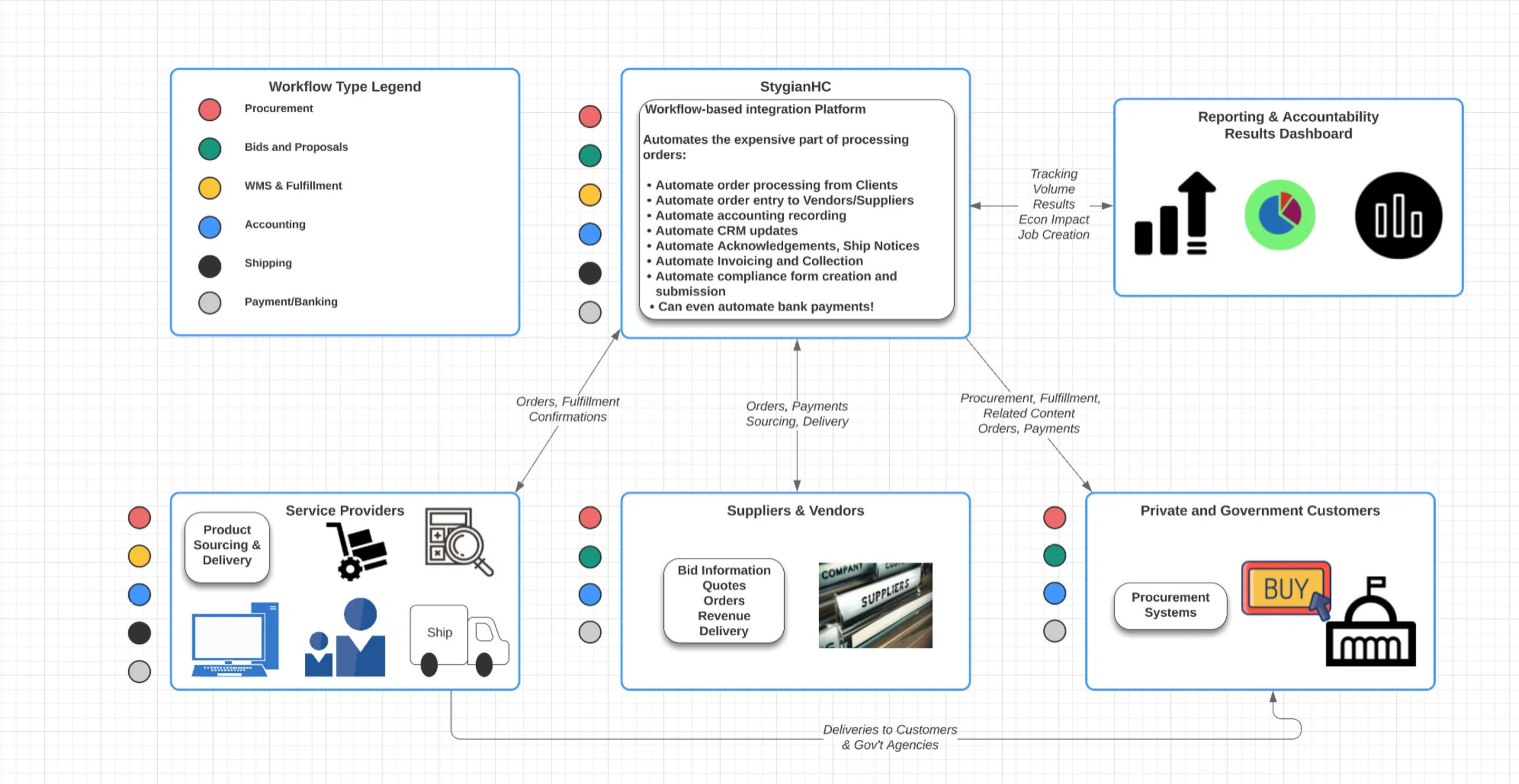 Stygian’s workflow technology platform utilizes AI and machine learning to develop flexible, secure, customized, agnostic and seamless connectivity to any procurement, ERP, payment and accounting system. Built by, owned and managed by Stygian. Our team does not use 3rd party resources for any customer integration. All transactions that traverse our workflow system are recorded, which allows us to replay any missing or lost transactions.